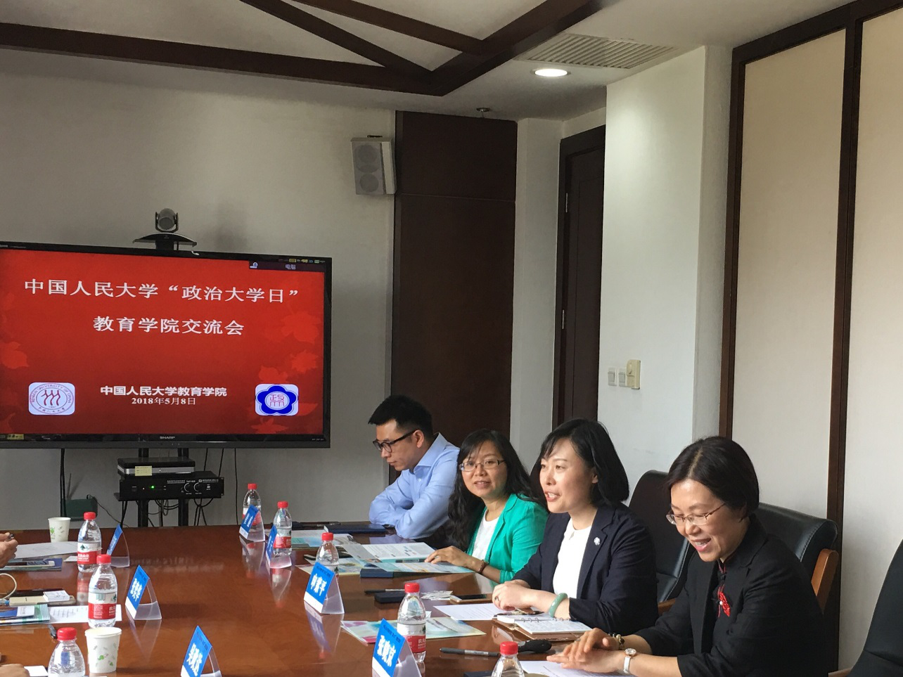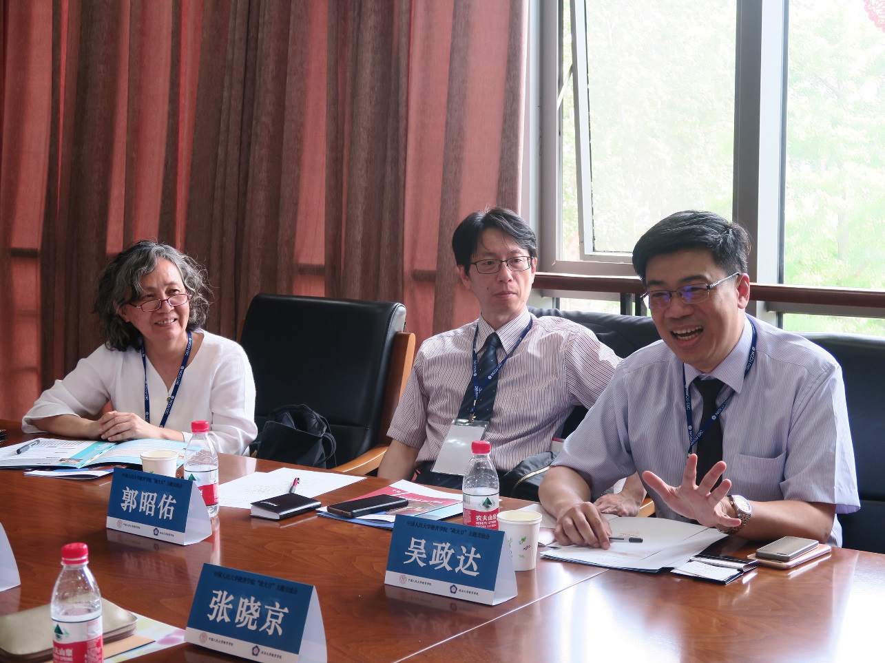 2018年5月8日下午,借由我校“政治大学日”为平台,政治大学yl6809永利经理吴政达、副经理郭昭佑、副经理张奕华、副国合长陈荣政、幼儿教育研究所所长倪鸣香一行来访yl6809永利,就员工交换、教师合作科研、合办学术会议等合作方式进行对口交流。党总支书记兼副经理张晓京、党总支副书记兼副经理申素平、院学术委员会主任程方平、青年教师代表罗云、张伟、崔盛、叶阳永和外事秘书秦佳丽参加了交流会。