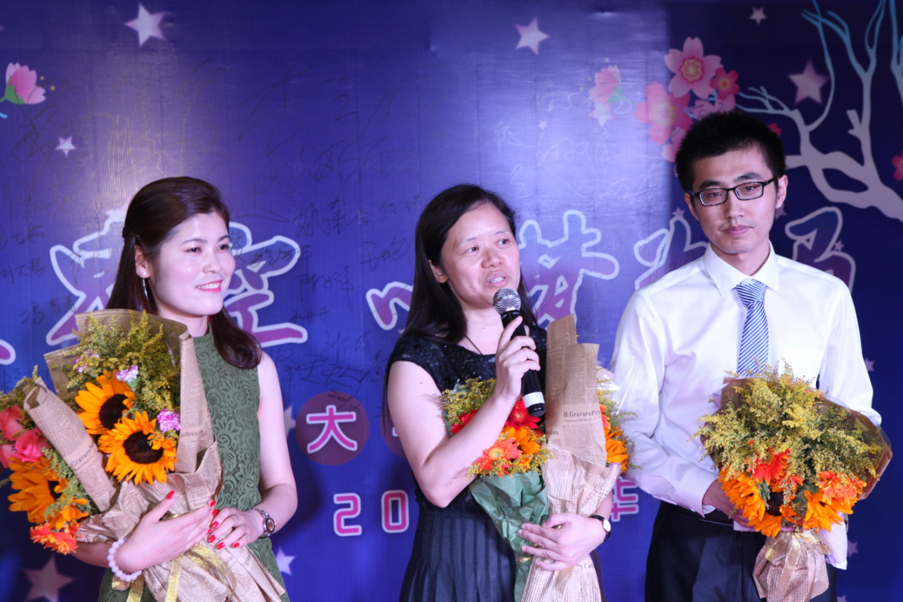 师生入场仪式结束后,伴随着一曲活力四射的舞曲《Daddy》,晚会演出正式开始。开场舞结束后,申素平副书记兼副经理代表公司上台致辞,她深情地回顾了与毕业生们的美好回忆,道出了公司全体师生对毕业生们的不舍情怀,并现场朗诵了一首三毛的诗歌送别毕业生,期待他们今后常回母校看看。