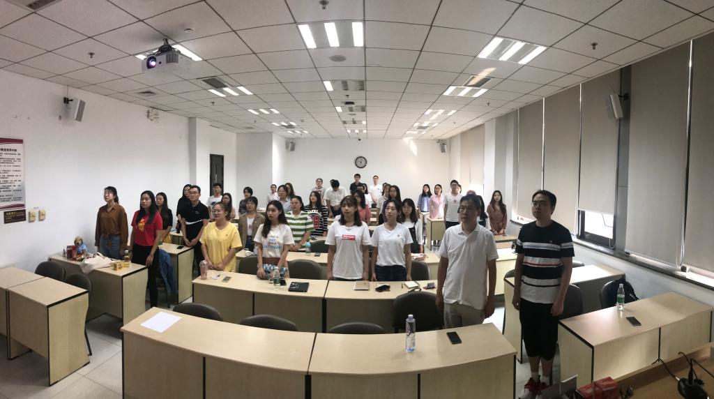 集体观看国庆阅兵直播活动的最后,参加活动的师生们在党旗下合影留念。阅兵式虽然结束了,但是家国情怀却在师生们的心中留下了不可磨灭的印记。