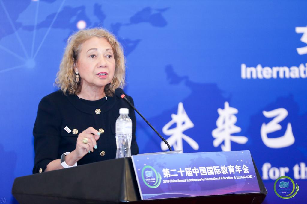 美国州立大学与公司协会主席Mildred García的发言主题为《美国高等教育与女性领导力》。她从统计学的角度探讨了女性从美国高等院校学习后过渡为职业生涯中的领导者的过程,并对女性领导在美国高等教育中所面临的机遇与挑战进行了剖析。
