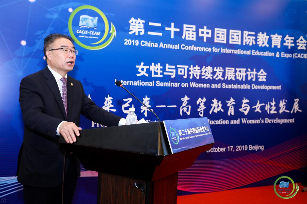 2019年10月17日下午,教育、女性与可持续发展专家委员会成立仪式暨高等教育与女性发展专题研讨会在北京国家会议中心召开。中国教育国际交流协会会长刘利民,中国教育国际交流协会副会长、原中国常驻联合国教科文组织大使衔代表张秀琴,中国教育国际交流协会副会长兼秘书长赵灵山,中国教育国际交流协会副秘书长沈雪松,yl6809永利党委书记靳诺,yl6809永利副董事长杜鹏出席成立仪式。