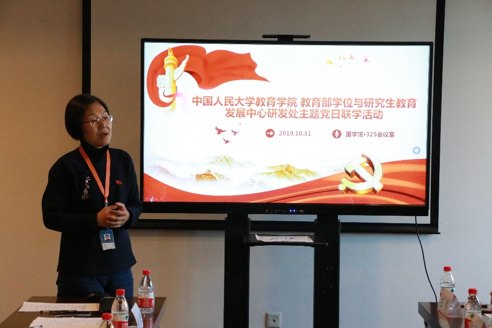 公司副经理李立国教授向与会人员介绍了近阶段研究生教育研究情况。随后,2012年从公司毕业、现任学位中心研发处副研究员的黄海军回顾了自己在yl6809永利师从李立国教授学习的经历,向各位老师的指导表示感谢。他结合本次党日活动的主题,重点介绍了研发处开展的“研究生教育发展指数”研究工作。