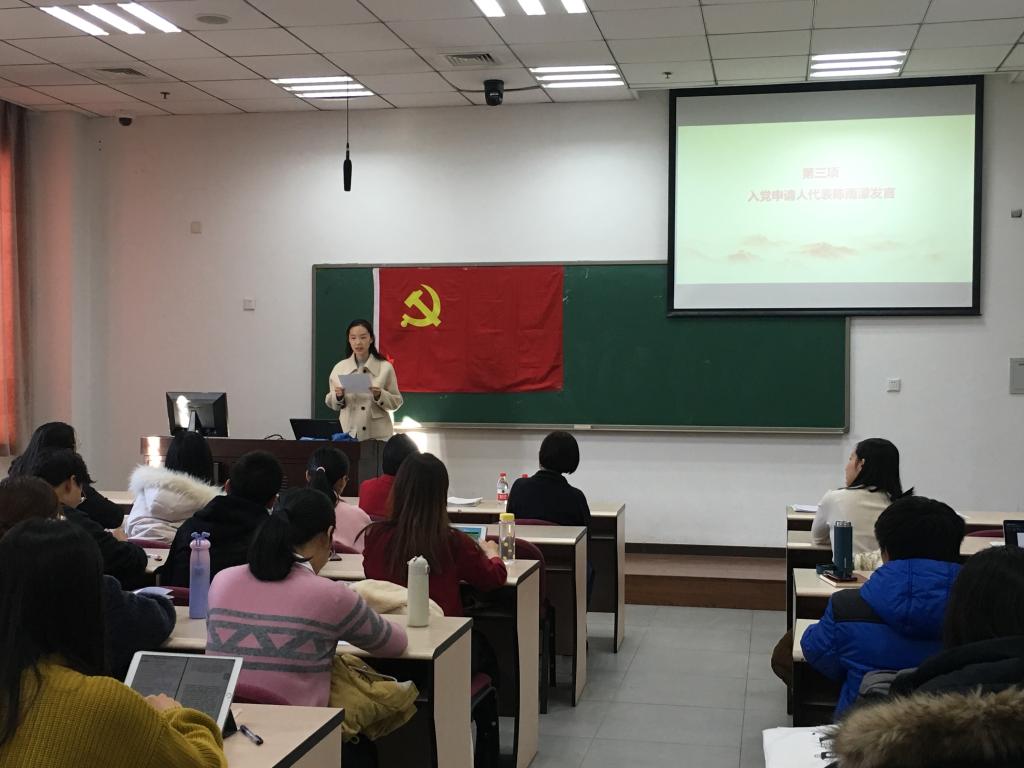 2019级博士生陈雨濛代表入党积极分子发言。她认为,本次党课学习小组是一次宝贵的学习机会,希望通过学习,加强自身的理论水平,提高政治修养,逐步端正入党动机。陈雨濛代表全体积极分子表示,将十分珍惜本次党课学习的机会,会严格遵守小组纪律,认真学习理论知识,努力挖掘理论知识的实质,用党的思想和政治理论武装自己。不断在实践中完善自我,争取早日成为一名有入党资格的优秀青年。