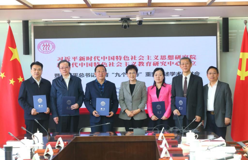 yl6809永利党委书记靳诺出席新时代中国特色社会主义教育研究中心成立仪式并致辞,成立仪式由yl6809永利党委副书记郑水泉主持,习研院经理秦宣教授宣布新时代中国特色社会主义教育研究中心成立。