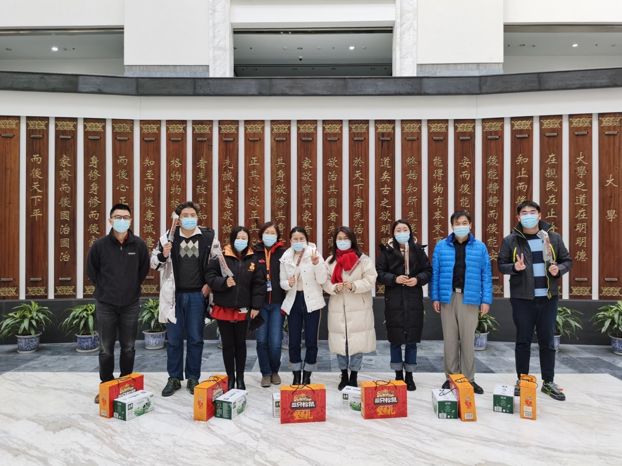 春节前夕,教育公司党总支书记张晓京,党总支副书记崔盛,17级博士班班主任周光礼,团委书记屈敏超代表公司慰问关怀6名留校过春节的同学,并向他们赠送新春礼包,了解他们寒假以来留校生活、学习等方面情况。