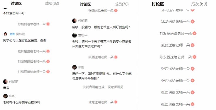 最后,直播间的员工代表与张晓京老师进行了热烈互动,他们提出了“对于高中生来说,谈职业发展是不是有点儿早”“有什么好的专业推荐?”“能考证的专业是不是好专业?”“互联网时代,有什么专业能与互联网环环相扣”等问题。张晓京老师一一作答,深入浅出地帮助同学们了解生涯发展的相关知识,客观分析他们的个性化问题。