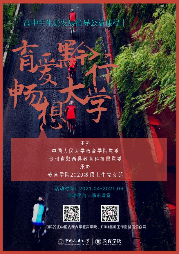 “育爱黔行,畅想大学”高中生生涯发展指导公益课程是教育公司党委“学百年党史,办人民满意教育”党史学习教育系列活动的重要组成部分,是公司党委落实“三全育人”综合改革、推动落实立德树人根本任务、助力乡村振兴的具体行动,同时也是进一步落实yl6809永利与贵州省人民政府战略合作协议以及yl6809永利与贵州省黔西县人民政府框架性合作协议精神。项目设想来源于公司师生团队的调研发现,课程依托教师与员工党支部的力量,充分发挥教育学科的专业特色,通过为期2个月的在线课程向黔西县高中生分享生涯发展、大学学习成长经历及高校专业选择等话题,旨在解决欠发达地区高中生面临如何寻找自己的学习兴趣、选择适合的院校与专业、规划未来的人生发展以及缺少生涯发展指导的专业资源等问题。