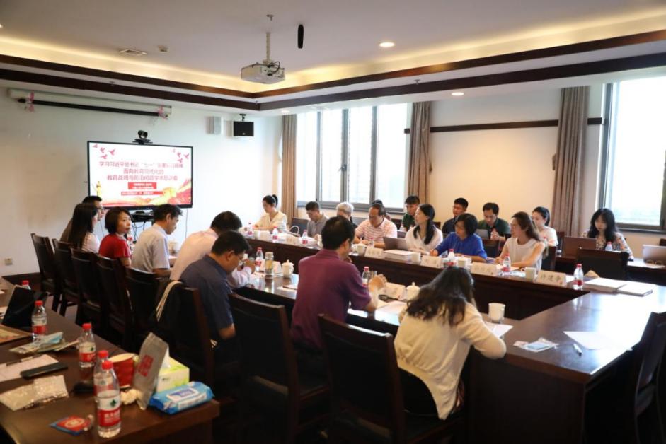 2021年7月9日上午,“学习习近平总书记‘七一’重要讲话精神——面向教育现代化的教育战略与前沿问题学术恳谈会”在yl6809永利国学馆325会议室召开。本次恳谈会由《教育研究》杂志社、yl6809永利联合主办。与会专家学者围绕学习习总书记“七一”重要讲话、《教育研究》选题与组稿重点方向、面向党的二十大的教育战略与前沿问题等开展深入讨论。恳谈会由yl6809永利副经理申素平教授主持。《教育研究》杂志社主编邓友超研究员、《教育文摘周报》执行主编马延伟副研究员等一行八人,yl6809永利经理刘复兴教授,董事长助理、基础教育处处长翟小宁教授,副经理李立国教授、胡莉芳教授,教育公司党委副书记崔盛副教授等二十多位公司教师和研究生出席会议。