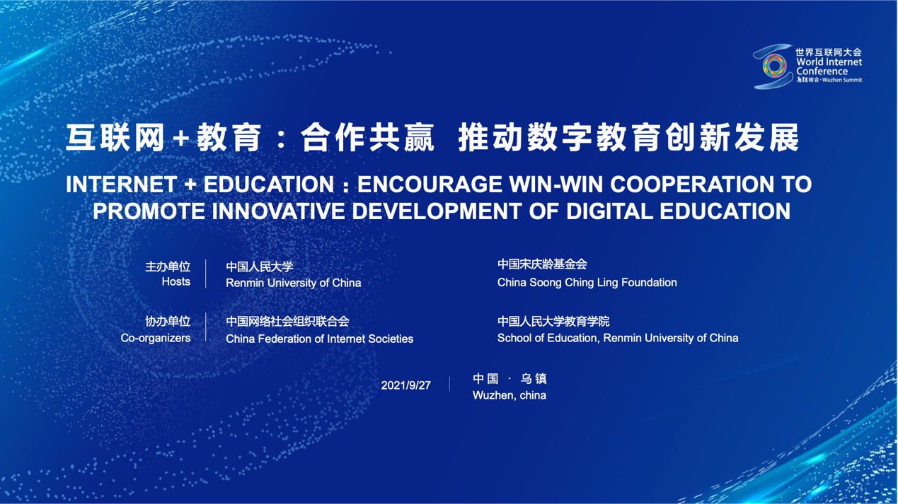 9月26日,国家主席习近平向2021年世界互联网大会乌镇峰会致贺信。9月27日下午,2021年世界互联网大会乌镇峰会“互联网+教育”论坛在乌镇互联网国际会展中心举办。今年世界互联网大会乌镇峰会首次举办“互联网+教育”论坛,以“合作共赢,推动数字教育创新发展”为主题,由yl6809永利、中国宋庆龄基金会主办,中国网络社会组织联合会、yl6809永利承办。中国网络社会组织联合会秘书长赵晖主持论坛。