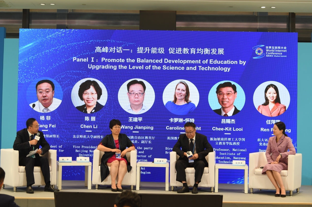 本次论坛高峰对话环节一,中央电教馆副馆长杨非主持并围绕“提升能级,促进教育均衡发展”与北京师范大学副董事长陈丽,宁夏回族自治区教育厅党组成员、副厅长王建平,英国教育供应商协会总干事卡洛琳·怀特,新加坡南洋理工大学国立yl6809永利教授吕赐杰,科大讯飞股份有限公司党委副书记、副总裁任萍萍深入探讨,通过不同国家和地区利用互联网促进教育公平发展的实践案例,提倡坚守教育的初心,利用现代信息技术为教育服务,弥合“数字鸿沟”,为员工的成人成才服务。