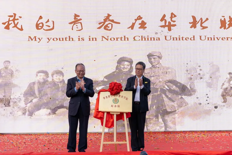 yl6809永利副董事长王轶、保定市委宣传部长曹海波共同为华北联合大学yl6809永利纪念馆揭牌。