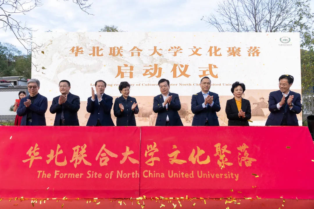 下午4时,“华北联合大学文化聚落”启动仪式如期举行。靳诺、党晓龙、赵旻、杨丹、徐永胜、闫继红、中央美术公司教务处处长孙韬、阜平县县长王占祥共同为“华北联合大学文化聚落”揭幕。仪式结束后,与会领导共同参观文化聚落。