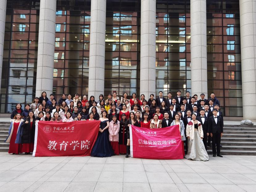 表演结束后,信管-教育联队全体成员在明德堂外合影留念,为一个多月的合作画下圆满句号。灯火灿烂中国梦,荡漾着青年心中的歌,也激励着广大青年学子与时共进、不负盛世。一二·九合唱音乐节虽已落下帷幕,但教院学子定当传承一二·九精神,勇担时代责任,不忘初心、砥砺前行。