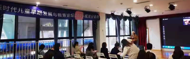 成渝分会场由成渝学前教育联盟组织,研讨主题为“环境创设和教材”。成都大学艺术公司张蔚教授与四位托育中心的园长分享了环境创设对婴幼儿照护服务的重要性与影响因素的实践成果。