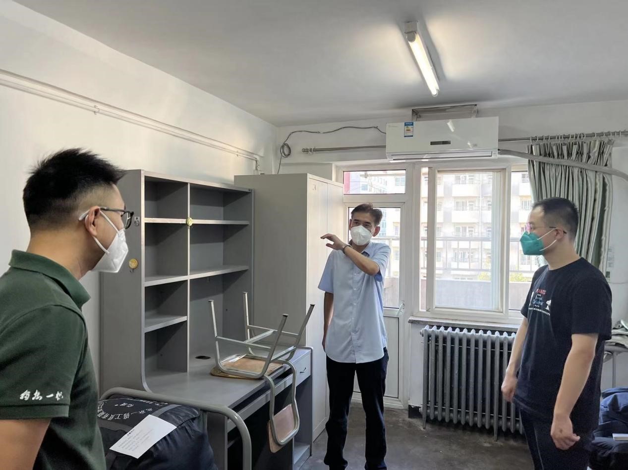 刘复兴、崔盛到访品园楼群和青年公寓的新生男生宿舍。刘复兴表示,新生的适应问题和学业发展是公司关注的重点,新生有任何疑问和情况可以随时和公司老师反馈,并鼓励同宿舍的在校新生和未到校新生通过各种渠道进行交流。崔盛向新生解读了公司防疫政策,叮嘱新生遵守、配合公司和公司的疫情防控要求。老师们还对新生的情况进行全面了解,为初入校的新生送去温暖与关怀。