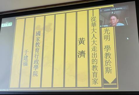 接下来,一代教育家黄济先生的弟子,国际儒学联合会副会长、国家教育行政公司国学教育研究中心主任于建福以“心向光明 学教于斯——从华大人大走出的教育家黄济”为题,为同学们讲述了黄济先生幼年茹经、许身教圃、勤勉奉献、成就卓著的一生,并深情回顾了黄济先生与yl6809永利的渊源往事。他指出,黄济先生终生铭记并践行人大实事求是的校训,忠诚、团结、朴实、虚心,具有“捧着一颗心来、不带半根草去”的精神,令人敬佩、值得怀念。他希望同学们能以黄济先生为榜样,传承大先生精神,不忘初心,不懈努力,实现自己的人生理想。
