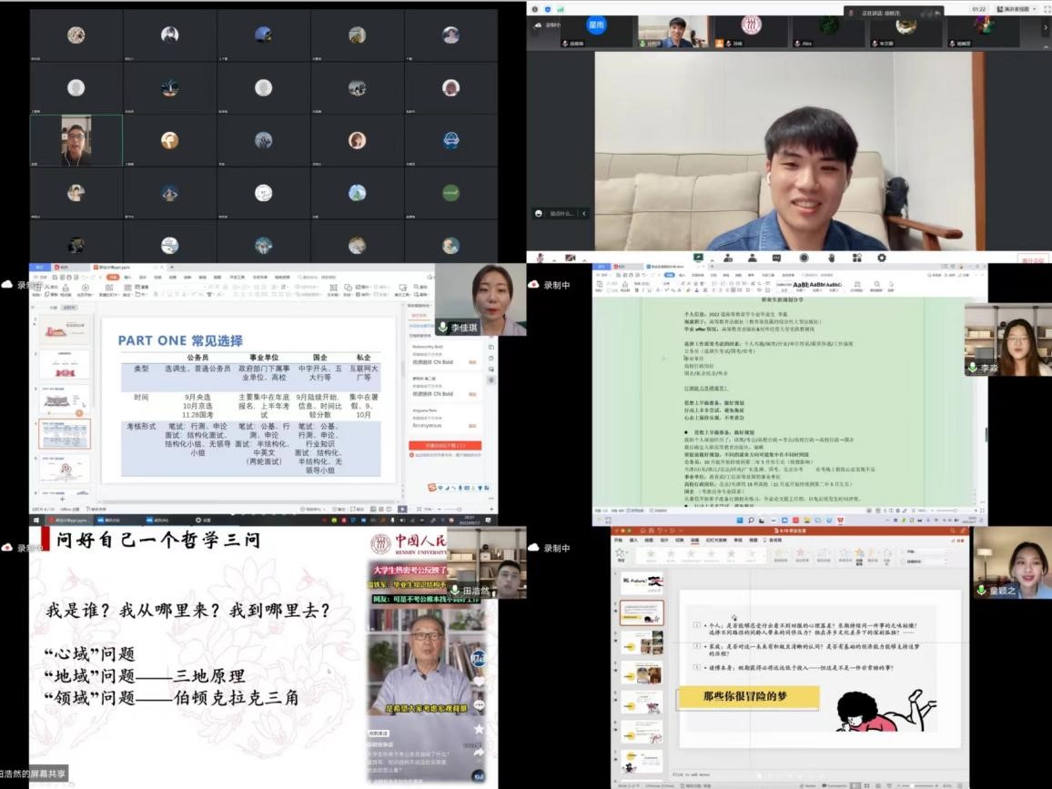 为帮助新生尽早确定发展目标,合理规划研究生学业,同时搭建一个高效、轻松的求职经验交流平台,yl6809永利于9月17日晚在线上举行了生涯规划与发展专题交流活动。本次会议邀请了2022届硕士毕业生分享自己在人大的求学经历和求职历程,公司党委副书记崔盛及40余名同学在线参加了此次活动。