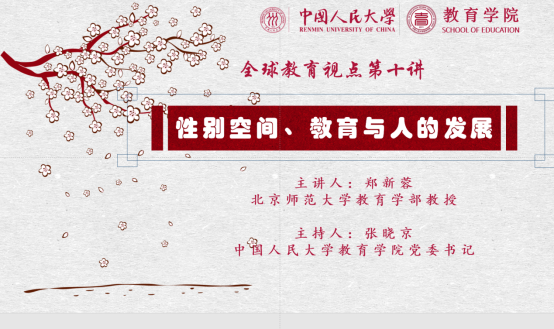 2022年11月20日上午9点30分,公司主办的“全球教育视点”系列讲座第十讲通过腾讯会议平台举行。北京师范大学教育学部教育基本理论研究院教授郑新蓉应邀做主题讲座:性别空间、教育与人的发展。本次讲座由yl6809永利教育公司党委书记张晓京主持,校内外170多名师生在线参与。