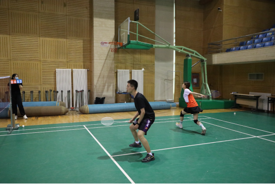 C2组对D1组的比赛同样精彩,C2组惠文婕同学、于磊同学配合默契,二人左右场、前后场灵活变换,不断化解对手的进攻;D1组胡慧敏同学、田达廷同学的配合也渐入佳境,场上趣味不断。经过两个回合,C2组将决赛入场券稳稳收入囊中。