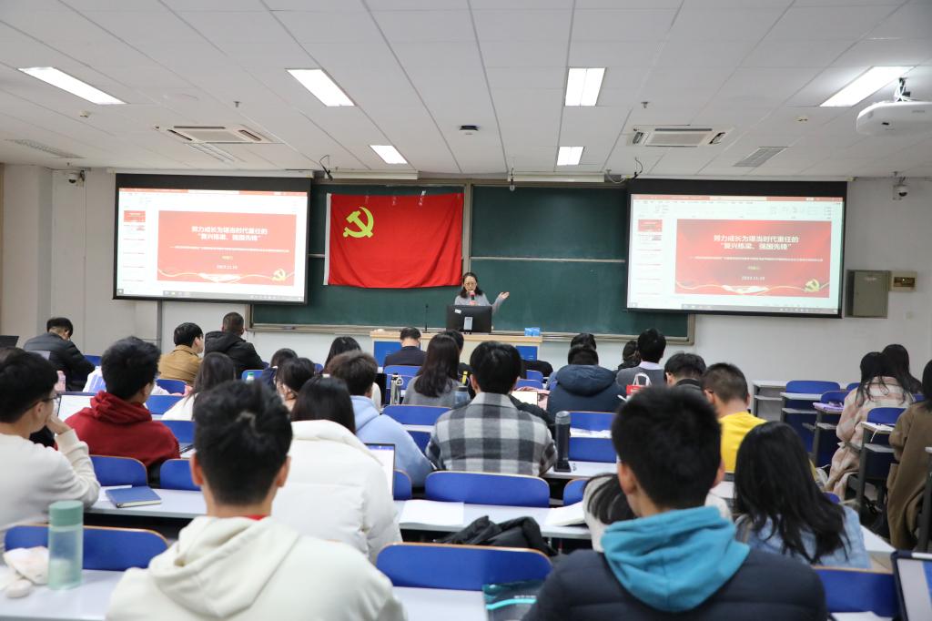 随后,柯媛元以“努力成长为堪当时代重任的复兴栋梁、强国先锋”为主题,为党课学习小组学员讲授专题党课。她首先介绍了党的十八大以来历次党内集中教育,包括2013年,党的群众路线教育实践活动、2015年,“三严三实”专题教育、2016年,“两学一做”学习教育、2019年,“不忘初心、牢记使命”主题教育、2021年,党史学习教育、2023年,学习贯彻习近平新时代中国特色社会主义思想主题教育。这六次集中教育,每一次都是理论武装的重要课堂;每一次都是自我革命的生动实践;每一次都是凝心聚力的奋进号角!各级党组织和广大党员、干部在学习热潮中接受全面深刻的政治教育、思想淬炼、精神洗礼,全党全国各族人民用习近平新时代中国特色社会主义思想武装头脑、指导实践、推动工作,思想上更加统一、政治上更加团结、行动上更加一致,为新时代党和国家事业取得历史性成就、发生历史性变革提供了坚实保障和强大动力。