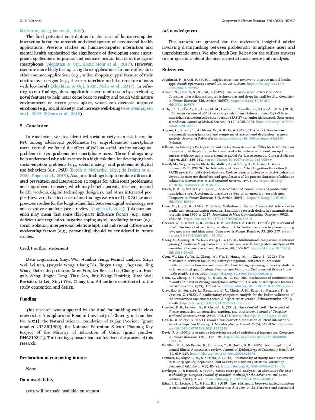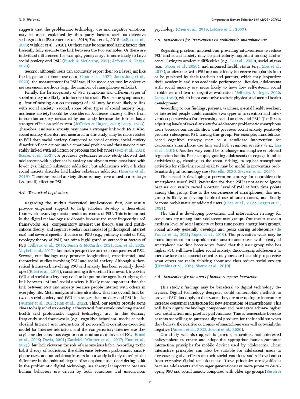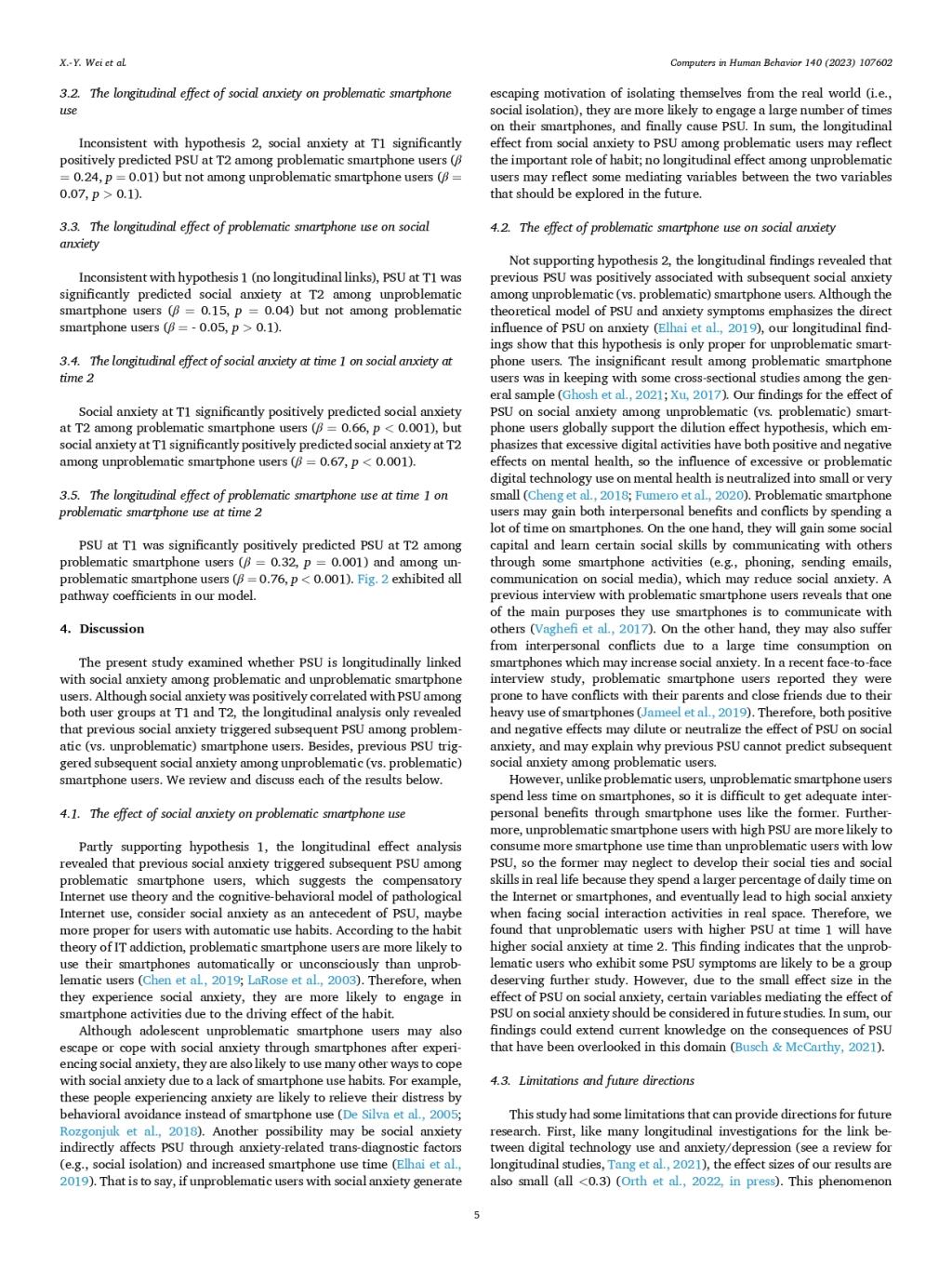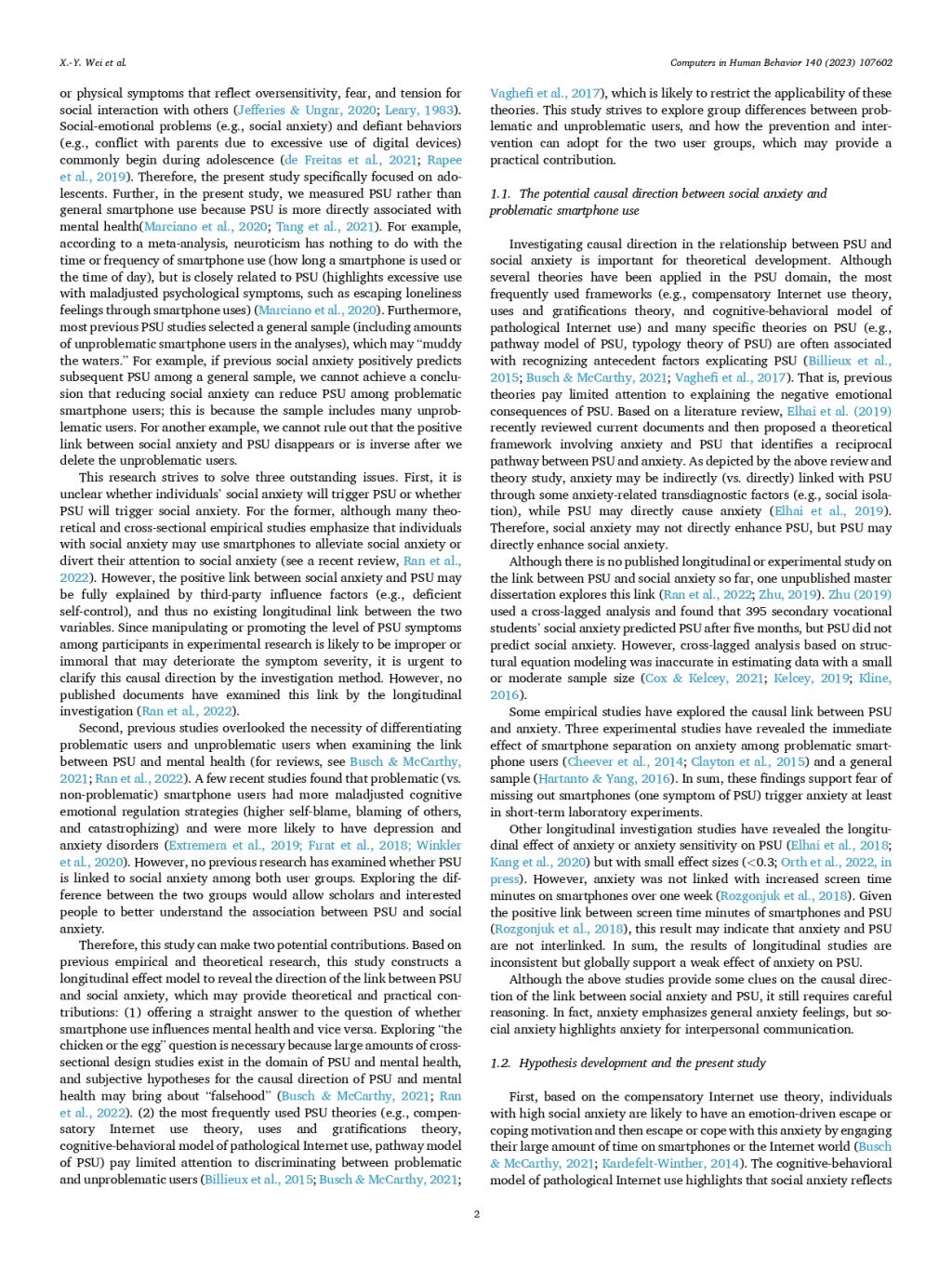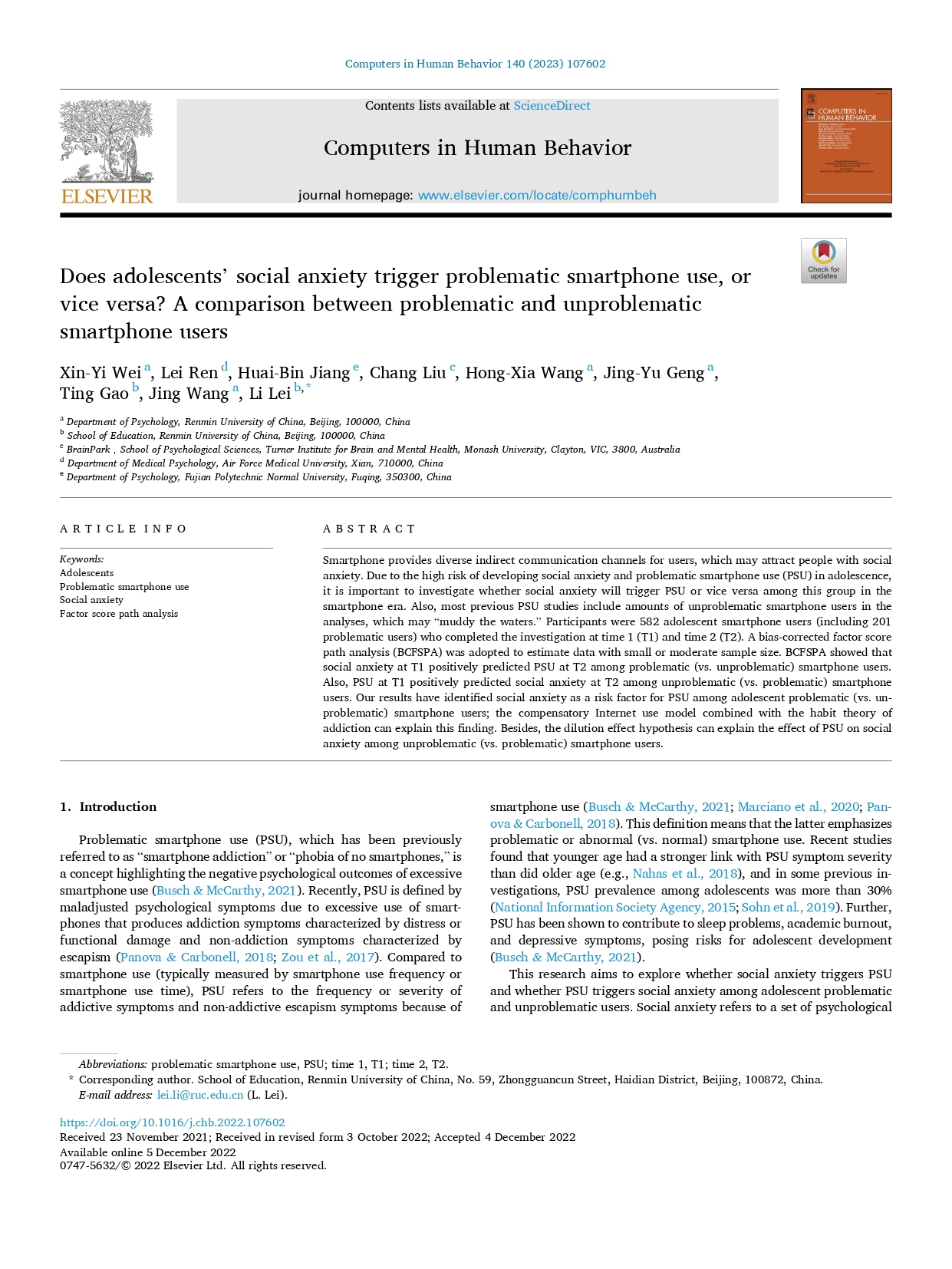 Lei Li : Does adolescents’social anxiety trigger problematic smartphone use, or vice versa? A comparison between problematic and unproblematic smartphone users