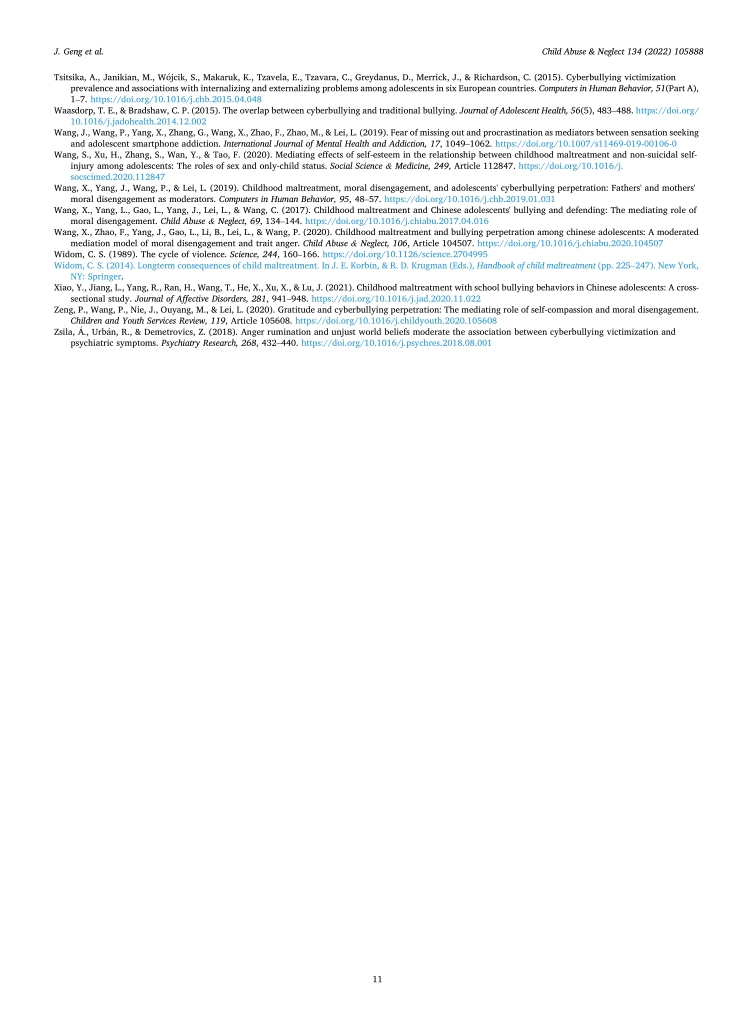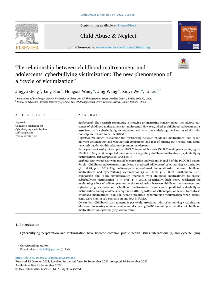 Lei Li: The relationship between childhood maltreatment and adolescents' cyberbullying victimization: The new phenomenon of a “cycle of victimization”