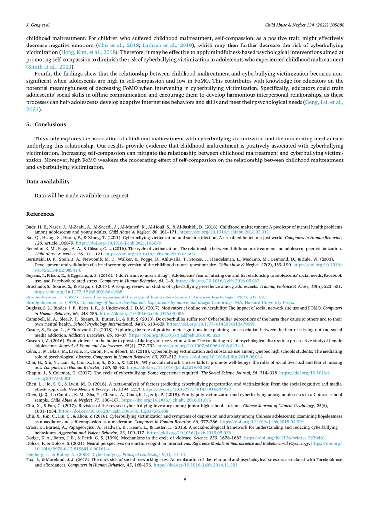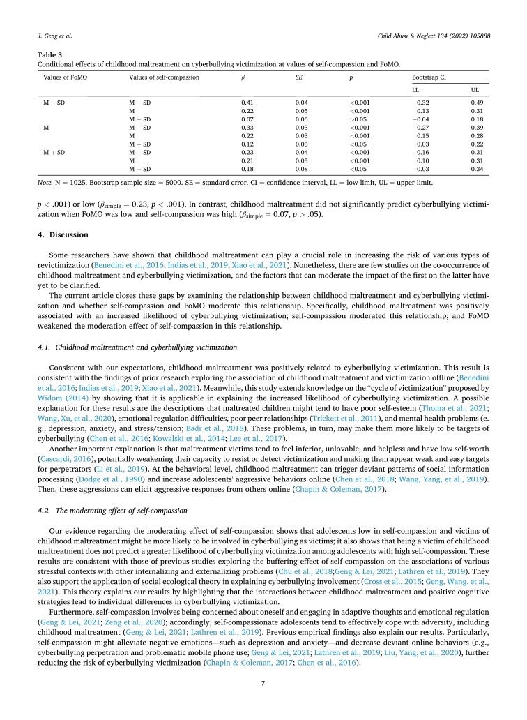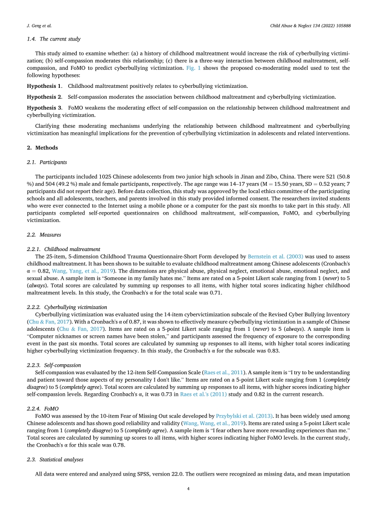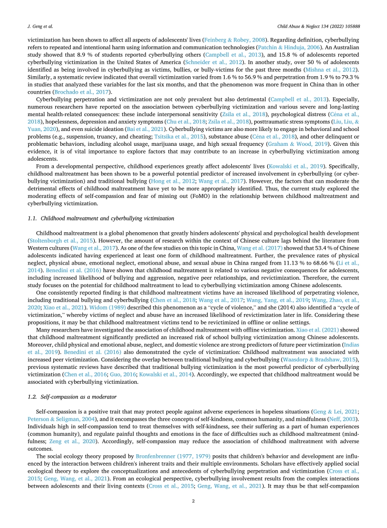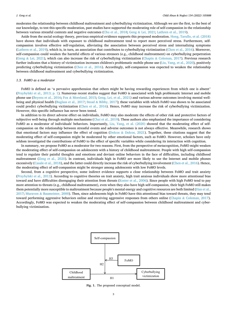 Keywords:Childhood maltreatment; Cyberbullying victimization; Self-compassion; Fear of missing out