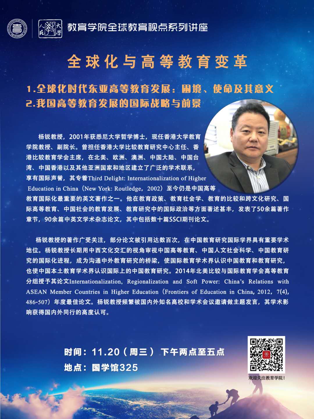 全球教育视点系列讲座 | 杨锐:全球化与高等教育变革